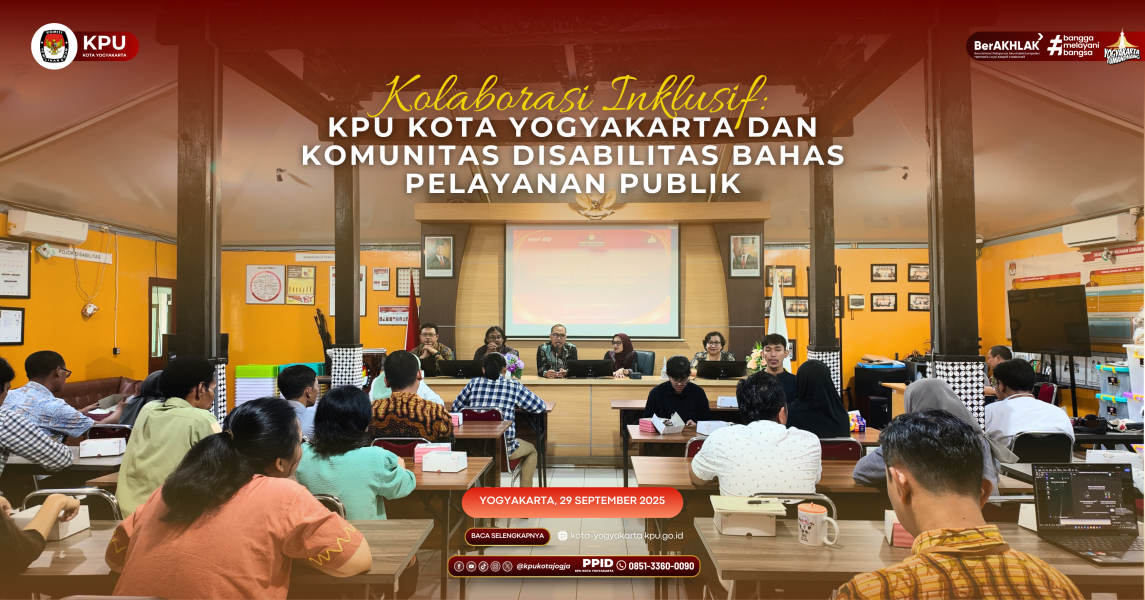 Yogyakarta - KPU Kota Yogyakarta gelar kegiatan bertajuk “Berinteraksi dengan Disabilitas dalam Pelayanan Publik” pada Senin (29/9/2025) di Pendopo KPU Kota Yogyakarta. Kegiatan ini jadi ruang dialog sekaligus wujud komitmen KPU Kota Yogyakarta dalam hadirkan layanan publik yang inklusif, ramah, dan setara bagi semua kalangan, termasuk penyandang disabilitas sebagai bagian dari kelompok rentan.