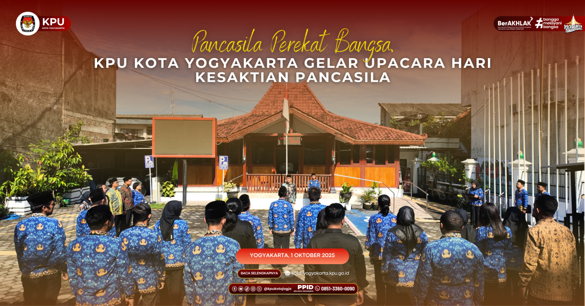 Yogyakarta – KPU Kota Yogyakarta selenggarakan Upacara Bendera Hari Kesaktian Pancasila Tahun 2025 pada Rabu (1/10/2025) di halaman kantor KPU Kota Yogyakarta. Upacara berlangsung khidmat dengan mengusung tema nasional “Pancasila Perekat Bangsa Menuju Indonesia Raya.”