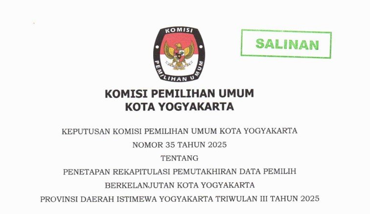 Berikut Keputusan KPU No 35 Tahun 2025 Tentang Penetapan Rekapitulasi Pemutakhiran Data Pemilih Berkelanjutan Kota Yogyakarta Download Disini