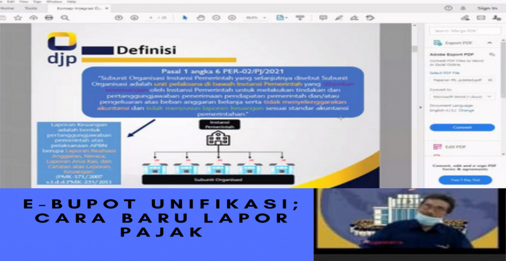 Dalam paparannya Tim Penyuluh KPP Pratama Yogyakarta menyampaikan “sehubungan dengan rencana implementasi nasional Aplikasi e-Bupot Unifikasi Instansi Pemerintah dan e-Bupot 21/26 Instansi Pemerintah sejak masa pajak Juli 2021 dalam bentuk elektronik. Aplikasi e-Bupot adalah aplikasi resmi yang dirancang dan disediakan oleh DJP untuk membuat bukti pemotongan dan pelaporan pajak, seperti SPT Masa PPh Pasal 23/26 dalam bentuk dokumen elektronik. Hadirnya aplikasi bukti pemotongan elektronik ini memudahkan proses perpajakan.”