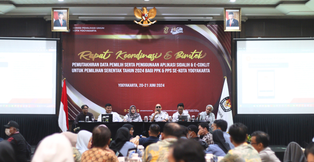 Yogyakarta– KPU Kota Yogyakarta menggelar Rapat Koordinasi Penyusunan Produk Hukum dan Kajian Hukum Regulasi Pemutakhiran Data Pemilih untuk Badan Adhoc (PPK dan PPS) se - Kota Yogyakarta pada Pemilihan Walikota dan Wakil Walikota Yogyakarta Tahun 2024 pada Kota Yogyakarta Selasa (02/07) bertempat di Hotel Tara Yogyakarta. Rapat koordinasi ini merupakan tindak lanjut dari tahapan coklit yang telah dimulai pada bulan Juni lalu guna menguatkan PPK & PPS dari aspek hukum. Kegiatan ini dihadiri oleh Kasat Intel Polresta Yogyakarta, Perwakilan dari Badan Kedsbangpol Kota Yogyakarta, Dinas Dukcapil Kota Yogyakarta, Bagian Tapem Setda Kota Yogyakarta, Komisioner & Sekretariat KPU Kota Yogyakarta, perwakilan dari PPK & PPS se-Kota Yogyakarta, serta menghadirkan Bawaslu Kota Yogyakarta sebagai narasumber. Kegiatan ini dibuka oleh Plh. Ketua KPU Kota Yogyakarta, Agus Muhamad Yasin, dalam sambutannya disampaikan pentingnya kajian hukum untuk tahapan Pemutakhiran Data Pemilih dalam pemilihan Walikota & Wakil Walikota Yogyakarta tahun 2024 . “Saya berharap dengan adanya kegiatan ini, penyelenggara pilwali dapat mengedepankan kajian hukum supaya bisa memitigasi permasalahan dan melancarkan dinamisasi dilapangan”, tegasnya. Hal senada juga diungkapkan oleh Anggota KPU Kota Yogyakarta Ketua Divisi Hukum dan Pengawasan, Ratna Mustika Sari. “Dalam pertemuan ini, kami hadirkan narasumber dari Bawaslu agar PPK dan PPS memahami bagaimana bawaslu melaksanaan pengawasan pada proses pemutakhiran data pemilih terkhusus pada tahapan coklit ini”, kata Ratna. Sementara itu, Ketua Divisi Data dan Informasi KPU Kota Yogyakarta, Zuhad Najamuddin, menyampaikan pentingnya pengelolaan data pemilih karena berkaitan langsung dengan logistik, KPPS, dan hal krusial yang lain. “Perlu ketelitian untuk meminimalisir kesalahan dalam memproses data,” ujarnya. Selain itu disampaikan lebih lanjut, kolaborasi antara divisi data dan divisi hukum sangat dibutuhkan supaya jika ada kendala, kita sebagai penyelenggara pilwalu memiliki kuda-kuda yang kuat dalam mengatasinya. Kegiatan dilanjutkan dengan pemaparan narasumber dari Bawaslu Kota Yogyakarta, Siti Nurhayati, yang menjelaskan bahwa fokus dari Bawaslu saat ini diawali dengan pencegahan pelanggaran Pilwali Kota Yogyakarta untuk meminimalisir gesekan dalam tahapan Pilwali ini. Nur juga menegaskan bahwa dalam coklit ini, data yang diambil merupakan data dejure yang dimaksud data resmi menurut hukum yang ada di Indonesia. Nurhayati juga menjabarkan terkait aspek yang diawasi oleh Panwaslu Kelurahan/Desa (PKD) yang diringkas antara lain yaitu; 1) prosedur coklit, 2) profesionalisme kinerja pantarlih, dan 3) tanggung jawab pada kinerja pantarlih (mengawasi proses coklit apakah dilaksanakan secara langsung oleh pantarlih yang telah ditetapkan dengan SK atau dilakukan oleh orang lain/joki). “Dalam pilwali tahun 2024 ini kami juga berfokus pada pengawasan yang kami prioritaskan, antara lain yaitu; daerah-daerah terluar, kelompok rentan, dan pemilih terkonsentrasi/terisolir” jelasnya. Terakhir, Nurhayati berharap dengan adanya sinergi dari KPU dan Bawaslu dapat menyukseskan pelaksanaan Pilwali Kota Yogyakarta Tahun 2024 ini. (sls)