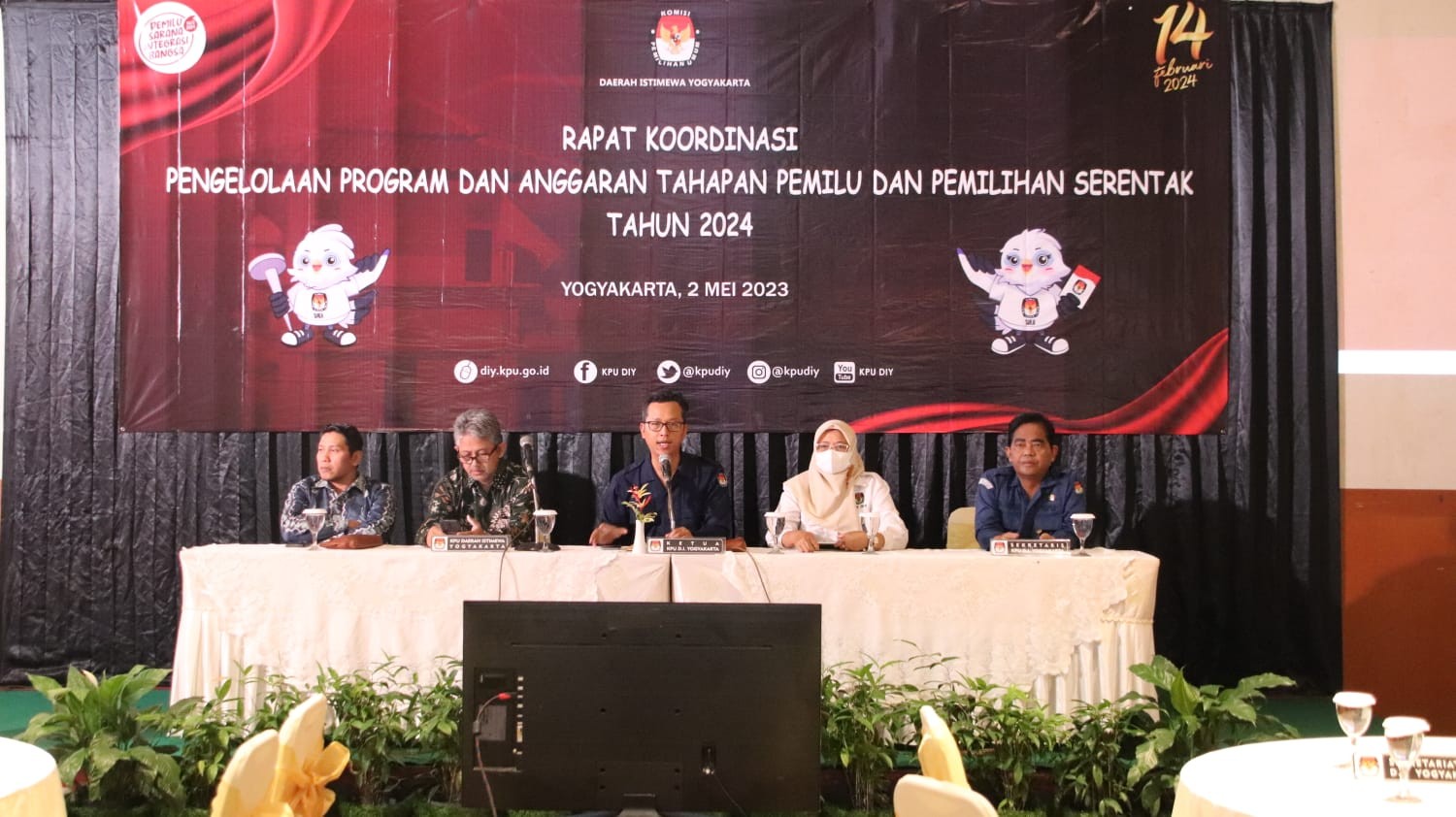 Yogyakarta - Ketua KPU Kota Yogyakarta Hidayat di dampingi anggota membuka Rapat Koordinasi Persiapan Tahapan Pengajuan Bakal Calon Anggota DPRD Kota Yogyakarta dalam Pemilihan Umum 2024 bersama Partai Politik peserta Pemilu, di Pendopo KPU Kota Yogyakarta Rabu, (3/5/2023)