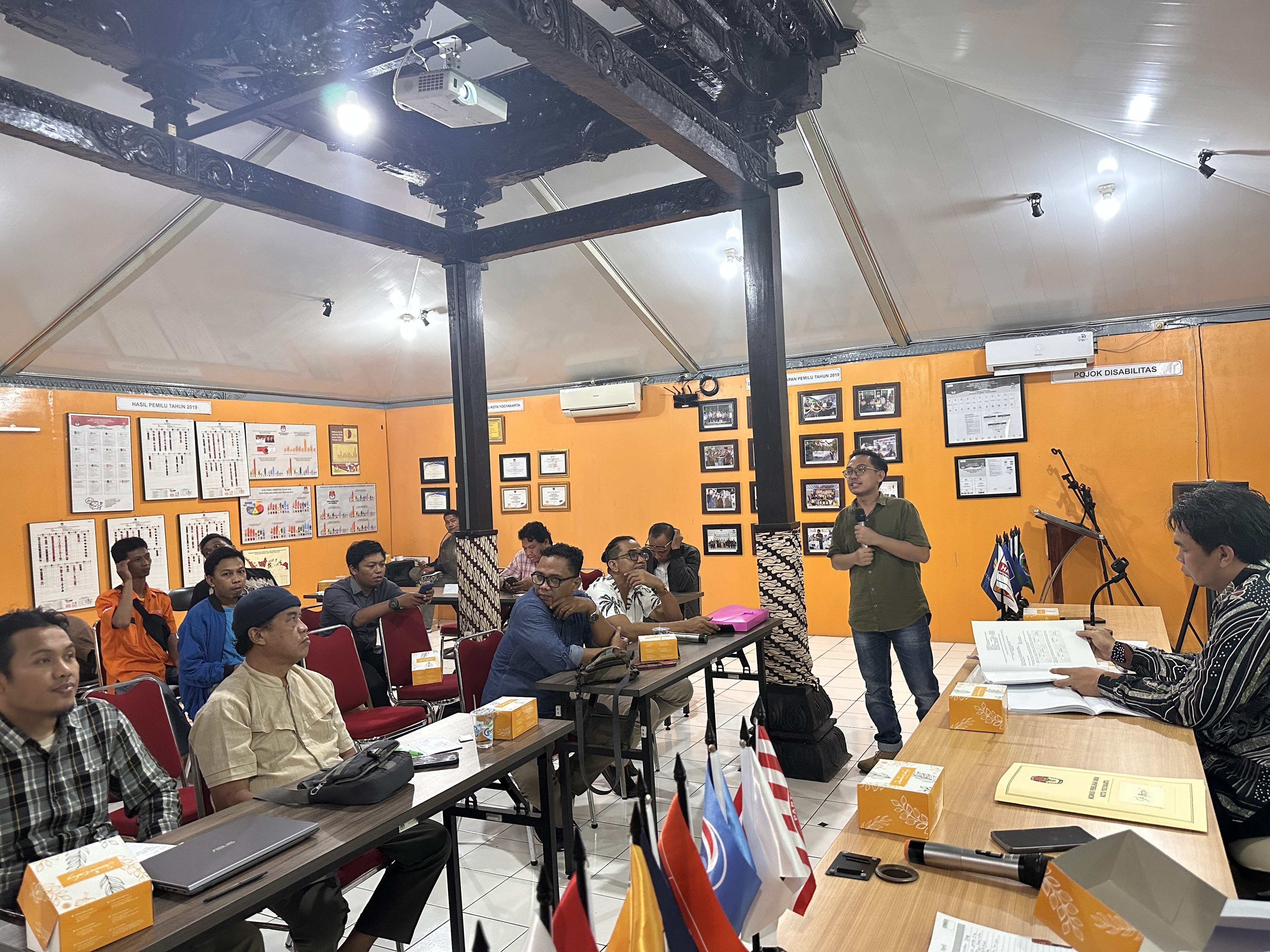Antara lain menyurati pimpinan Partai Politik Peserta Pemilu pada tingkat Kota Yogyakarta, menyiapkan buku tamu yang memuat nama Partai Politik Peserta Pemilu, nama pimpinan dari Partai Politik Peserta Pemilu yang hadir atau pengurus yang diberi kuasa atau petugas penghubung, menyiapkan kartu pengenal untuk Partai Politik Peserta Pemilu,”jelasnya.