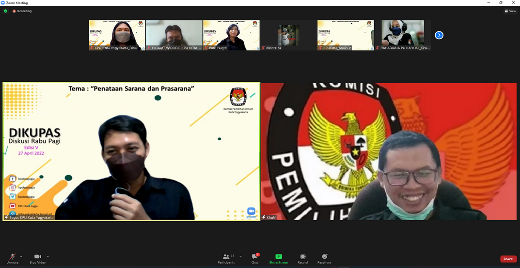 Yogyakarta, Jum’at, 22 April 2022. Dalam rangka mencegah terjadinya tindak pidana korupsi yang disebabkan oleh kepentingan pribadi / kedekatan hubungan pribadi dalam kegiatan tertentu yang berkaitan dengan penggunaan anggaran dan / atau sumber daya organisasi lainnya, KPU Kota Yogyakarta menggelar Sosialisasi terkait Benturan Kepentingan. Kegiatan sosialisasi ini mengundang seluruh Komisoner, Pejabat Struktural dan PPNPN melalui zoom meeting. Pemateri sosialisasi adalah Muhammad Hasyim dari KPU DIY. Bertindak sebagai moderator Kadiv Hukum dan Pengawasan KPU Kota Yogyakarta Bashori Alwi. Ketua KPU Kota Yogyakarta Hidayat Widodo dalam sambutannya mengatakan,”Dengan dilaksanakannya kegiatan Sosialisasi terkait Benturan Kepentingan, kita harapkan adanya pencegahan, dan tidak terjadi adanya benturan kepentingan di lingkungan Kota Yogyakarta. ” Pemateri Sosialisasi terkait Benturan Kepentingan, Muhammad Hasyim menyampaikan bahwa, “Benturan Kepentingan adalah Situasi dimana penyelenggara negara memiliki atau patut diduga memiliki kepentingan pribadi terhadap setiap penggunaan wewenang, sehingga dapat mempengaruhi kualitas keputusan dan / atau tindakannya.” Di akhir Sosialisasi ini, pemateri menutup dengan kalimat, “Jangan takut oleh karena kemarahan orang, sehingga kita takut berkata dan bersikap jujur.”(Ar)*