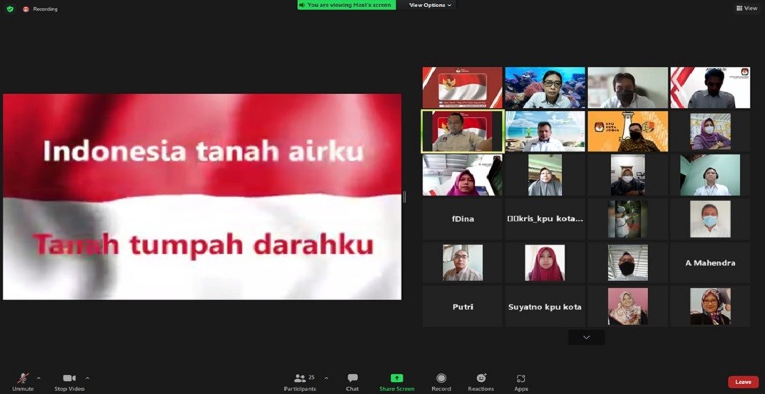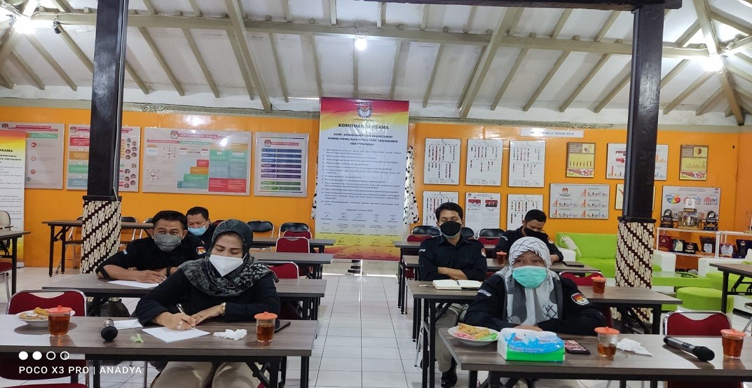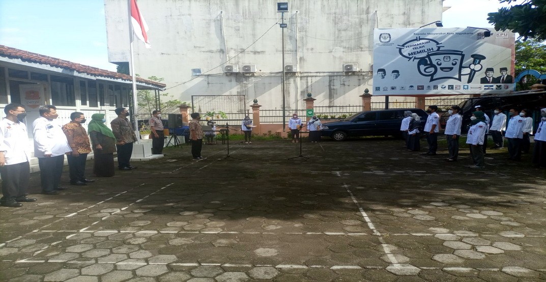 Yogyakarta – Pada hari Senin, tanggal 24 Januari 2022, KPU Kota Yogyakarta menggelar Apel Pagi yang diikuti oleh Seluruh Komisioner, Pejabat Struktural, Staf/Pelaksana, dan Tenaga Kontrak. Apel pagi secara luring ini dilaksanakan sesuai dengan Surat Ketua KPU Nomor 52/SDM.03.5/04/2022, tertanggal 21 Januari 2022. Dengan harapan agar terpelihara rasa kebangsaan, cinta tanah air, pengabdian terhadap negara dan rakyat Indonesia serta menumbuhkan disiplin Aparatur Sipil Negara di Lingkungan KPU RI, KPU Provinsi dan KPU Kabupaten/Kota. Bertindak sebagai pembawa acara Lisa Kadarwati, apel pagi diawali dengan penyiapan pasukan oleh Kepala Sub. Bagian Keuangan, Umum dan Logistik, yang dilanjutkan dengan laporan mulai dari Sub. Bagian Keuangan, Umum dan Logistik, Sub. Bagian Program dan Data, Sub. Bagian Teknis dan Hubungan Partisipasi Masyarakat, serta Sub. Bagian Hukum. Berturut-turut dilanjutkan dengan menyanyikan Lagu Indonesia Raya, mengheningkan cipta, pembacaan Pancasila oleh Pembina Apel Bapak Erizal dan diikuti oleh peserta apel pagi, Pembacaan Naskah Pembukaan Undang-Undang Dasar Negara Republik Indonesia Tahun 1945 oleh Luky Anggraeni, Pembacaan Panca Prasetya Korpri oleh Sinta Citra Cahyani. Adapun yang bertugas sebagai petugas perlengkapan pada apel pagi ini adalah Putri Nastiti. Pembina Apel, pada kesempatan ini menyampaikan, “Bahwa KPU sebagai Lembaga Penyelenggara Pemilihan Umum terbentuk berdasarkan Amandemen Undang-Undang Dasar Negara Republik Indonesia Tahun 1945. Disampaikan lebih lanjut, KPU sebagai sebuah lembaga meliputi, 3 (tiga) hal, yaitu Struktur, Kultur dan Tujuan KPU sebagai Lembaga Penyelenggara Pemilihan Umum. Dengan ketiga hal tersebut, baik Struktur KPU yang meliputi KPU RI, KPU Provinsi dan KPU Kabupaten/Kota, dengan kultur dari masing-masing penyelenggara pemilihan, diharapkan dapat mempersiapkan diri untuk dapat menyelenggarakan Pemilu dan Pemilihan Serentak tahun 2024 dengan sebaik-baiknya.” Apel pagi ditutup dengan membaca doa dipimpin oleh Bapak Erizal, semoga Tuhan Yang Maha Esa senantiasa memberikan kesehatan, memberikan kelancaran dalam melaksanakan dan menyelesaikan tugas-tugas sehari-hari, dan semoga kita dimudahkan dalam menyelenggarakan Pemilu dan Pemilihan Serentak 2024 yang akan datang. (Ar)