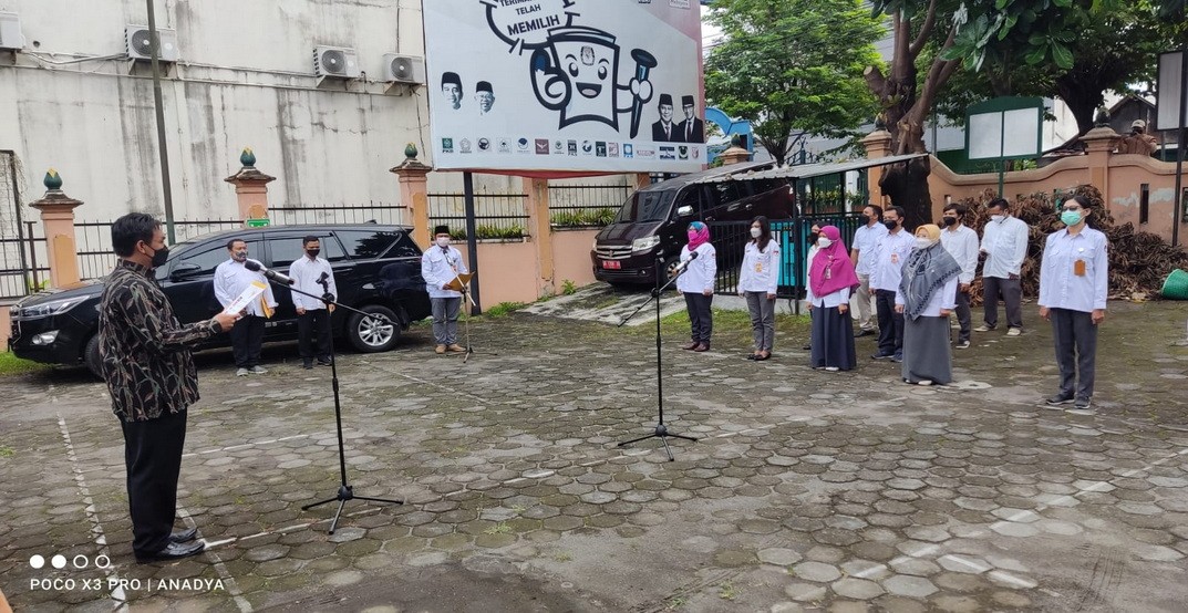 Yogyakarta –Senin, 3 Januari 2022, merupakan hari pertama masuk kerja di tahun 2022. KPU Kota Yogyakarta menyelenggarakan Apel Pagi secara luring di halaman kantor. Apel Pagi diikuti oleh Seluruh Komisioner, Pejabat Struktural, Staf/Pelaksana, dan Tenaga Kontrak. Dengan pembawa acara Didik Sutrianto. Apel pagi diawali dengan laporan dari masing-masing sub. bagian, yang diawali Sub. Bagian Keuangan, Umum dan Logistik, Sub. Bagian Program dan Data, dilanjutkan Sub. Bagian Teknis dan Hubungan Partisipasi Masyarakat, serta Sub. Bagian Hukum. Berturut-turut dilanjutkan dengan menyanyikan Lagu Kebangsaan Indonesia Raya dan mengheningkan cipta. Pembacaan Pancasila oleh Pembina Apel Bapak Hidayat Widodo dan diikuti oleh peserta apel pagi, Pembacaan Naskah Pembukaan Undang-Undang Dasar Negara Republik Indonesia Tahun 1945 oleh Muh Heri Suryono, sebagai Pembaca Panca Prasetya Korpri oleh Sriyanto. Adapun dokumentasi pada apel pagi ini adalah Lia Ekawati Agustina, dan perlengkapan oleh Bagus Dwi Saputra.