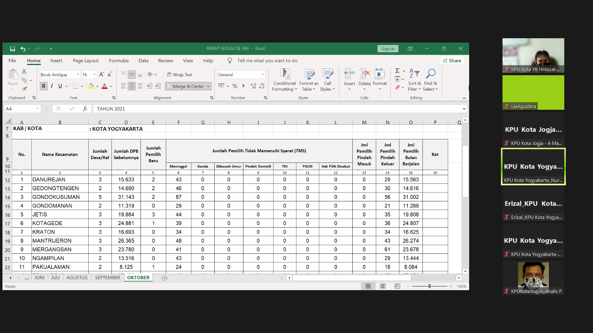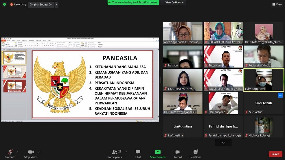 Yogyakarta, 2 November 2021. Di tengah agenda akhir tahun 2021 yang semakin banyak, KPU Kota Yogyakarta tetap bersemangat untuk melaksanakan kegiatan rutin bulanan. Salah satunya yakni Pelaksanaan Rapat Pleno Pengisian Dan Penetapan Kartu Kendali SPIP Periode Oktober 2021. Kegiatan ini digelar dengan melalui aplikasi Lark meeting karena Kota Yogyakarta masih berstatus PPKM level 2. Sebagai bagian tetap menjalankan prokes covid 19. Hadir dalam kegiatan ini seluruh komisioner KPU Kota Yogyakarta, dan pejabat struktural yang ada dalam struktur satgas SPIP KPU Kota Yogyakarta. Untuk memeriksa kelengkapan pengisian dalam lampiran kartu kendali SPIP periode Oktober 2021. Mulai lampiran dan dokumen Meliputi lampiran kepegawaian, keuangan negara dan hibah, pengadaan, persedian dan asset BMN, SAKIP, rekap perjalanan dinas, dan kelengkapan administrasi pengelolaan dana hibah. Semua diperiksa satu persatu. Setelah dilakukan pemeriksaan lampiran kartu kendali tersebut, rapat pleno yang dipimpin ketua KPU Kota Yogyakarta Hidayat Widodo dengan meminta persetujuan dari semua peserta rapat pleno untuk mensahkan laporan kartu kendali SPIP tersebut. Kemudian dibacakan berita acara Rapat Pleno Pengisian Dan Penetapan Kartu Kendali SPIP Periode Oktober 2021 oleh kadiv Hukum dan Pengawasan Bashori Alwi. Untuk selanjutnya lampiran kartu kendali akan di tandatangani sekretaris KPU Kota Yogyakarta dan kadiv Hukum dan Pengawasan. Dan di hari yang sama lampiran kartu kendali beserta dokumennya dikirimkan oleh satgas SPIP KPU Kota Yogyakarta ke KPU DIY lewat email. Termasuk berita acara Rapat Pleno Pengisian Dan Penetapan Kartu Kendali SPIP Periode Oktober 2021 juga disertakan. Sebagai kelengkapan formil dan materiil pelaksanaan SPIP di lingkungan KPU Kota Yogyakarta. Demikian (ba)*
