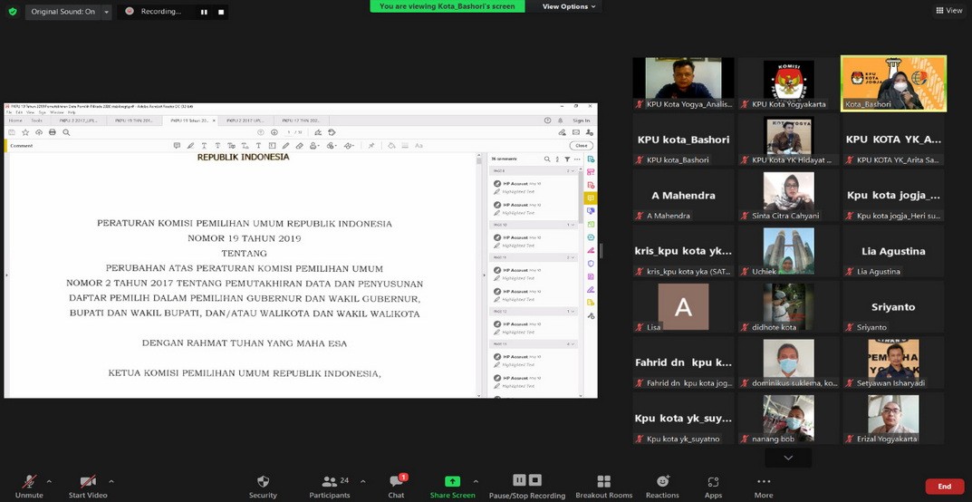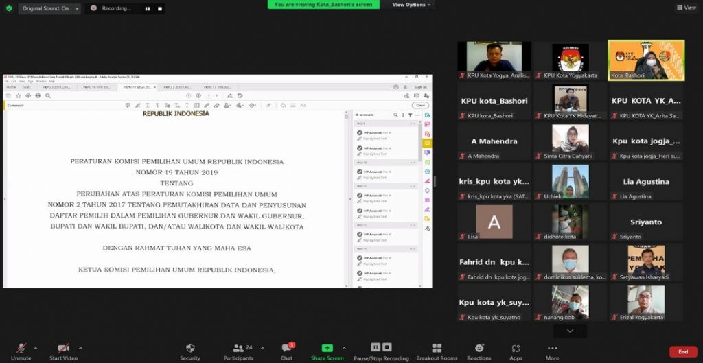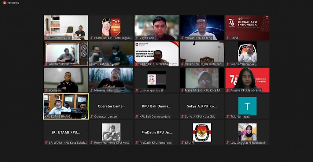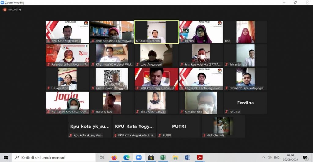 Pemberlakuan Pembatasan Kegiatan Masyarakat (PPKM) Level 4 dan Level 3 Corona Virus Disease 2019 di Wilayah Jawa dan Bali yang mengharuskan 100% pegawai bekerja dari rumah, sehingga apel pagi minggu kelima bulan Agustus dilaksanakan secara daring melalui aplikasi zoom cloud meeting.