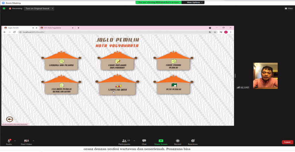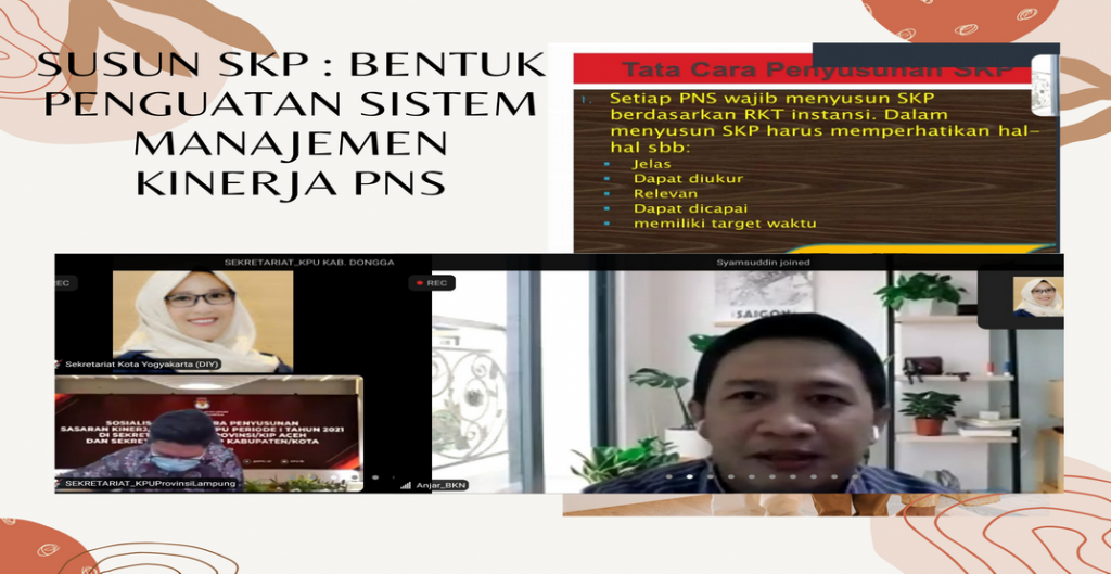 Yogyakarta – Dengan telah diterbitkannya Keputusan Kepala Badan Kepegawaian Negara Nomor 87 Tahun 2021, tentang Pemuktahiran Data Mandiri Aparatur Sipil Negara dan Pejabat Pimpinan Tinggi Non Aparatur Sipil Negara Secara Elektronik, tanggal 10 Mei 2021. Sekretariat Jenderal KPU RI bersama Badan Kepegawaian Negara RI menyelenggarakan kegiatan Bimbingan Teknis Pemutakhiran Data Mandiri Aparatur Sipil Negara di lingkungan KPU secara daring melaui aplikasi zoom meeting. Rabu, (28/07/2021)