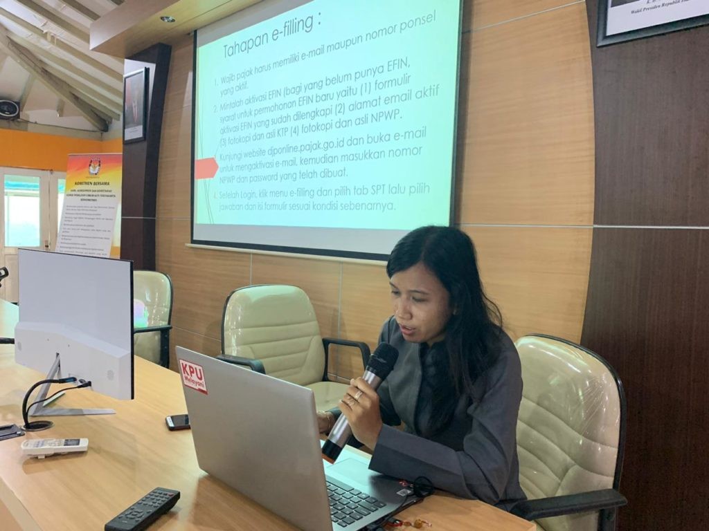 Sharing Knowledge di minggu ke tiga bulan Januari ini ( Selasa, 21/01/2020) diisi dengan sosialisasi pengisian Surat Pemberitahuan (SPT) Tahunan PPh Wajib Pajak orang pribadi tahun pajak 2020, bertempat di Pendopo Demokrasi KPU Kota YK yang dihadiri oleh seluruh Komisioner maupun sekretariat. Narasumber kali ini adalah Putri Nastiti staf bagian KUL sekaligus bendahara, dalam pemaparannya menyampaikan kegiatan sosialisasi ini agar diikuti dengan baik dan dapat dilaksanakan atau ditindaklanjuti dengan penyampaian SPT Tahunan PPh Wajib Pajak orang pribadi tahun pajak 2020 melalui website Direktorat Jenderal Pajak (www.pajak.go.id). Kegiatan ini ditujukan dalam rangka mendukung upaya peningkatan pelaporan SPT Tahunan PPh orang pribadi (1770, 1770 S atau 1770 SS). Penyampaian SPT Tahunan PPh orang pribadi dilakukan dengan e-Filling melalui website Direktorat Jenderal Pajak (www.pajak.go.id). Untuk bisa mengakses layanan e-Filling memang harus diawali dengan mendapatkan e-Fin, yang fungsinya kurang lebih mirip dengan nomor PIN pada ATM. Cara mendapatkan e-Fin yang paling mudah adalah dengan cara mendatangi dan menyampaikan permohonan memperoleh e-Fin ke KPP tempat wajib pajak terdaftar. Setelah e-Fin diperoleh, wajib pajak tinggal membuka website efiling.pajak.go.id kemudian memilih melakukan registrasi e-Filing dan mengikuti langkah-langkah sesuai petunjuk di layar monitor. Selanjutnya praktek cara pengisian SPT Tahunan dengan e-Filling, satu persatu disampaikan secara detail kepada para peserta, dan hal ini mendapat sambutan yang antusias dan serius dari para pegawai KPU Kota Yogyakarta. Program e-Filling, tambah putri, bahwa Pegawai Negeri Sipil (PNS) yang memiliki penghasilan hanya dari satu unit kerja, pasti pajak-pajaknya telah dibayarkan oleh Bendahara Pengeluaran sehingga di setoran pajaknya Nihil. Namun dalam pengisian SPT secara online, tetap harus dicantumkan nomor bukti pemotongan pajak yang dilakukan Bendahara Pengeluaran, sebagai bahan pengisian SPT bagi seluruh pegawai. Sesi tersebut kemudian dilanjutkan dengan contoh pengisian SPT Tahunan yang benar. Setelah sharing knowledge berakhir, dilanjutkan dengan Penandatanganan komitmen dan kinerja seluruh staff sekretariat di KPU Kota Yogyakarta setelah di hari sebelumnya jajaran komisioner dan struktural sekretariat telah melaksanakan kegiatan yang sama, tujuannya untuk menyepakati hal-hal yang berhubungan dengan target kinerja dan target capaian realisasi, sehingga masing-masing penanggungjawab program dapat melaksanakan kegiatan sesuai dengan jadwal yang ada.