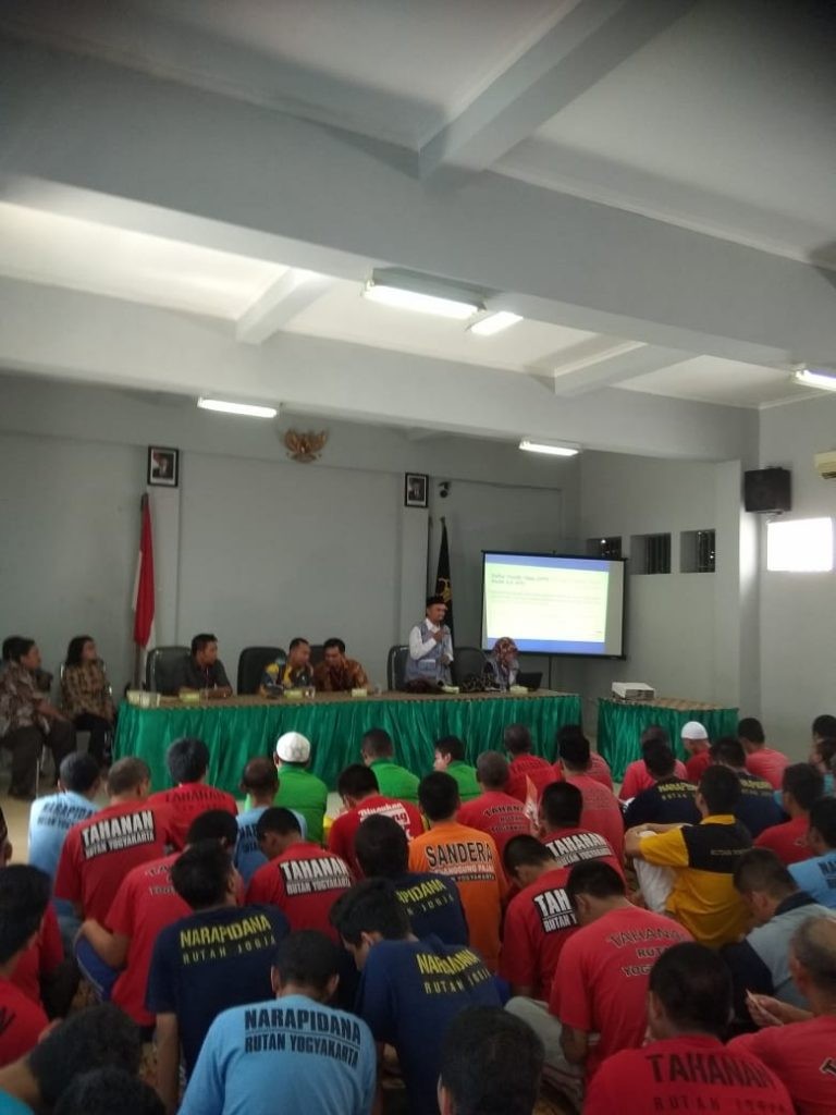 Yogyakarta, Sebanyak 100 warga binaan penghuni Rutan kelas II A Yogyakarta mengikuti sosialisasi yang digelar Relawan Demokrasi (Relasi) basis Berkebutuhan Khusus pada Sabtu (23/2) Sosialisasi ini adalah rangkaian dari program kerja Relasi basis berkebutuhan khusus yang salah satu sasarannya adalah masyarakat yang memiliki hak pilih yang berada di dalam rutan. Hayun, salah seorang Relasi dari basis berkebutuhan khusus Sosialisasi diisi materi pemilu meliputi pengertian pemilu, pentingnya pemilu, tantangan pemilu, hak dan syarat memilih, DPT, DPTb, DPK, surat suara yang didapat, cara mengecek hak pilih, parpol-caleg-capres cawapres yang mengikuti pemilu. Hayun juga mengatakan dari sekian warga binaan yang ada didalam rutan, banyak di antara mereka juga yang memiliki domisili dari luar Kota Yogyakarta. Oleh karena itu dikesempatan yang baik, Relasi menysosialisasikan berapa jenis surat suara yang akan mereka peroleh saat menggunakan hak pilihnya di TPS pindah memilih. Pada kesempatan itu Relasi juga membagikan brosur, leaflet hingga mendokumentasikannya sebagai pertanggungjawaban administrasi ke KPU Kota Yogyakarta. (WS)