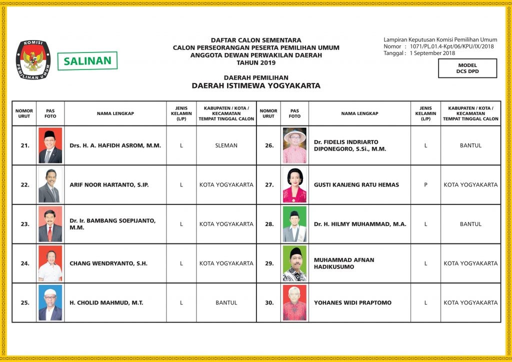 Yogyakarta – KPU Kota Yogyakarta telah menetapkan daftar pemilih sementara (DPS) Pemilu 2019 sebanyak 300.863 pemilih. Dari jumlah tersebut, Panitia Pengawas Pemilu Umum (Panwaslu) kota Yogyakarta menemukan 1.260 data pemilih yang bermasalah. Ketua Panwaslu Kota Yogyakarta Iwan Ferdian Susanto mengatakan setelah dilakukan pencermatan data pemilih sementara ditemukan data yang masih bermasalah. Data bermasalah yang ditemukan di antaranya data pemillih tanpa nomor induk kependudukan, data pemilih ganda, TNI/Polri aktif yang terdaftar, orang meninggal yang terdaftar, identitas tidak jelas, pemilih memenuhi syarat tetapi tidak terdaftar. “Pemilih meninggal dunia itu yang terdaftar sebanyak 103 orang,” kata Iwan Ferdian kepada wartawan di Balaikota Yogyakarta, Jumat (6/7/2018). Dari hasil penyisiran data soft copy DPS, Panwaslu kota Yogyakarta menemukan sebanyak 1.260 data pemilih bermasalah di Kota Yogyakarta. Data bermasalah yaitu data pemilih tanpa nomor induk kependudukan sebanyak 10 orang, data pemilih ganda sebanyak 1.019 orang, TNI/Polri aktif 1 orang, pemilih meninggal dunia sebanyak 103 orang, pemilih yang identitasnya tidak jelas 49 orang, pemilih memenuhi syarat tetapi tidak terdaftar sebanyak 65 orang. “Jumlah tersebut kemungkinan masih bisa bertambah,” katanya. Panwas juga menemukan adanya pemilih yang tidak sesuai domisili dan pemilih yang belum memiliki KTP elektronik tapi terdaftar sebagai pemilih. Daftar pemilih bermasalah ini akan diberikan kepada KPU kota Yogyakarta sebagai saran rekomendasi untuk diperbaiki. Menurutnya, data bermasalah tersebut terjadi karena petugas pantarlih yang tidak bekerja dengan baik. “Kemungkinan ada pantarlih yang tidak bekerja dengan baik tidak menggunakan metode sensus, jadi tidak dicoret namanya. Kelalaian lainya mungkin memasukan data berlebih, mungkin lelah, ngantuk, sehingga ada beberapa nama yang kedobel, “kata Iwan. Panwaslu kota Yogyakarta juga mendapati penempelan DPS yang tidak sesuai. Di antaranya DPS yang tidak ditempel namun digantung sehingga menyulitkan masyarakat untuk melakukan pengecekan. Kemudian juga ada DPS yang ditempel di tempat yang tidak sterategis. (sip/sip)