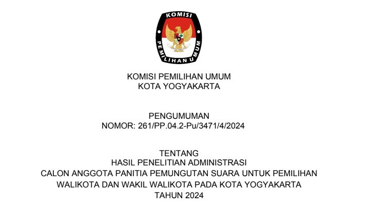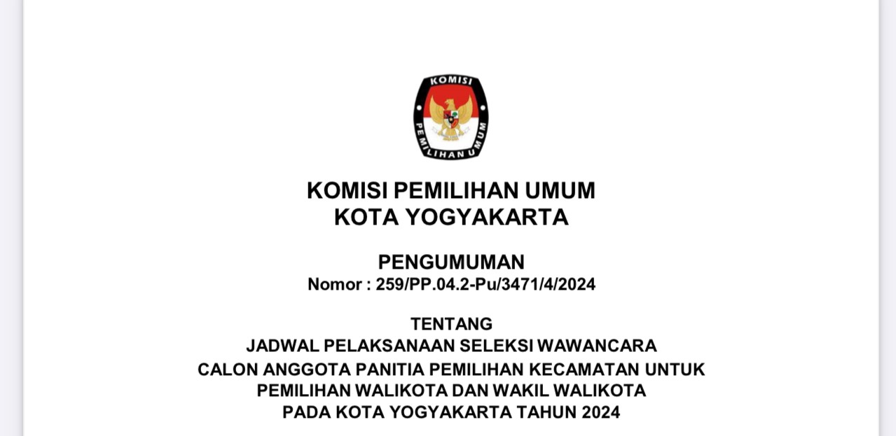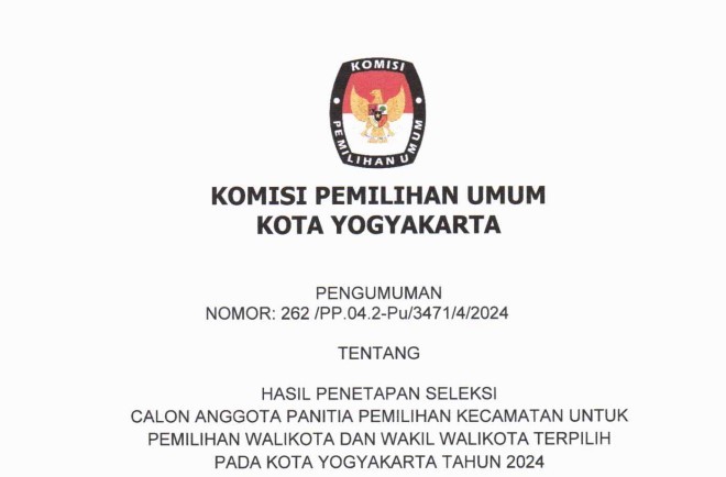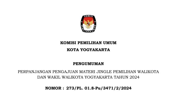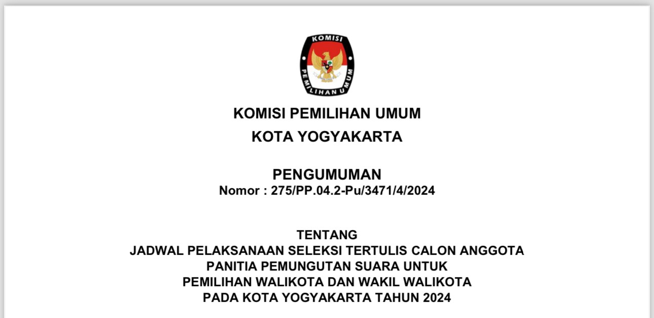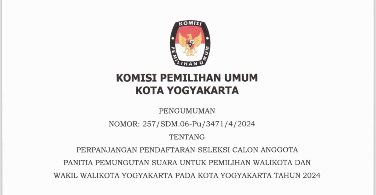 PERPANJANGAN PENDAFTARAN SELEKSI CALON ANGGOTA PANITIA PEMUNGUTAN SUARA UNTUK PEMILIHAN WALIKOTA DAN WAKIL WALIKOTA YOGYAKARTA PADA KOTA YOGYAKARTA TAHUN 2024