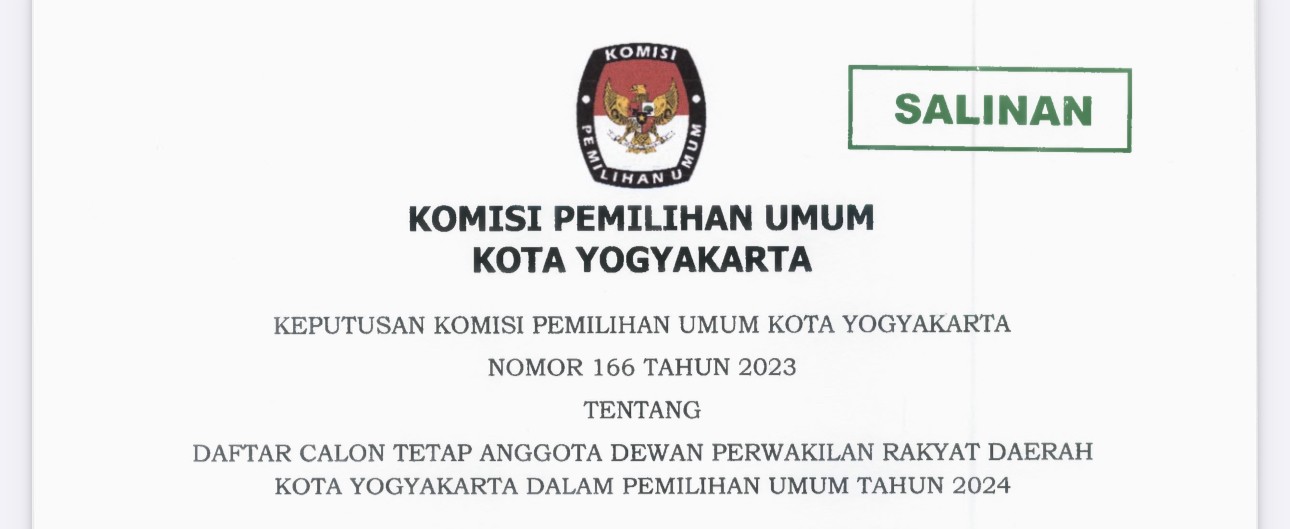 Pengumuman DCT Anggota DPRD Kota Yogyakarta dan Persentase Keterwakilan Perempuan: Download Disini