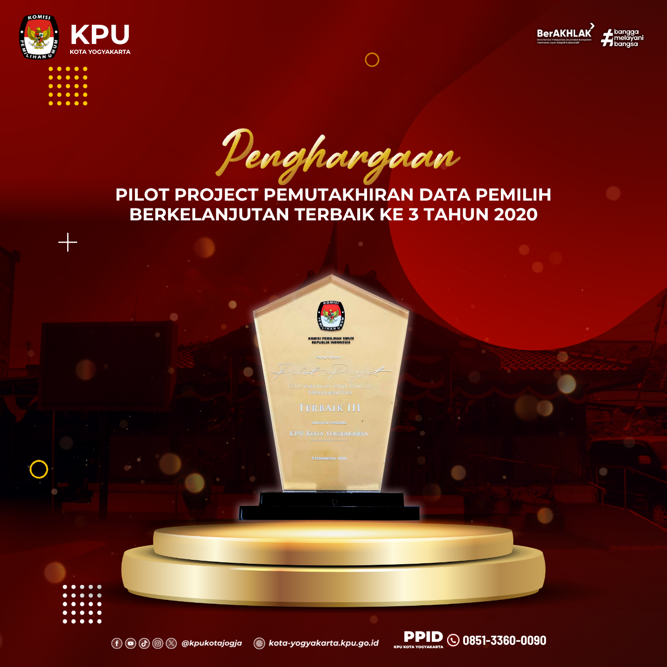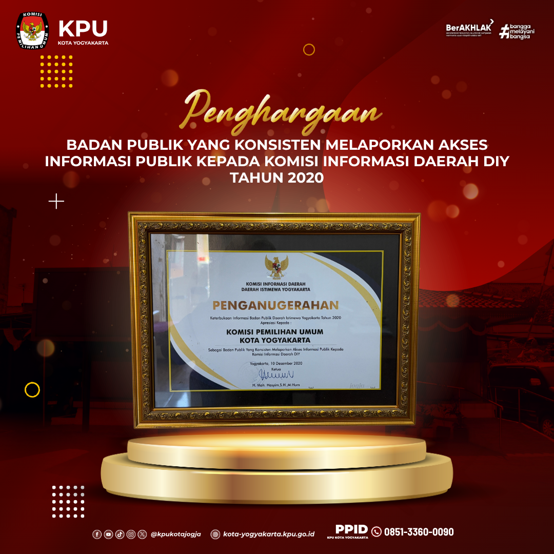 Penghargaan/Prestasi Tahun 2020 No Piagam Detail 1 Penghargaan Badan Publik Yang Konsisten Melaporkan Akses Informasi Publik Kepada KID DIY unduh 2 Penghargaan Pilot Project Pemutakhiran Data Pemilih Berkelanjutan Terbaik III Nasional Tahun 2020 Unduh Share this artikel : Dilihat 726 Kali.
